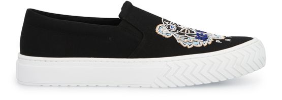 Für Liebhaber des Streetwear-Stils mit Skate-Esprit bietet das Haus Kenzo die Sneakers K-Skate Tiger, schlichte Slip-ons mit dem berühmten Tiger als Motiv.