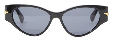 Mit einer raffinierten Glasform und ikonischen metallischen Oberflächen offenbart diese Sonnenbrille die Handschrift der italienischen Marke Bottega Veneta. Passend zu einem Cocktailkleid oder einem Blazer.