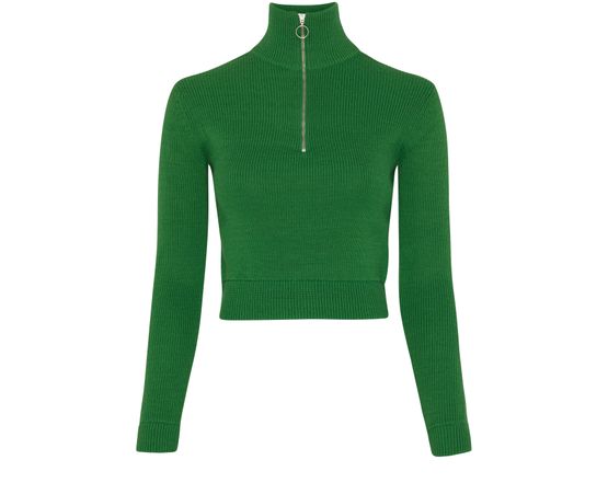 • Beschreibung : lange ärmel, gesticktes logo, logo auf der rückseite, hochgeschlossener ausschnitt, reißverschluss, crop.