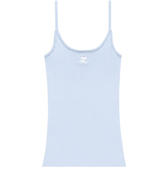 Erlebe das rippbündchen top von Courreges mit rundhalsausschnitt und logo auf vorderseite. Die strukturierte Optik und das klare Design lassen sich vielseitig kombinieren – ob zu Jeans oder eleganten Hosen, für einen stilvollen, zeitgemäßen Auftritt.