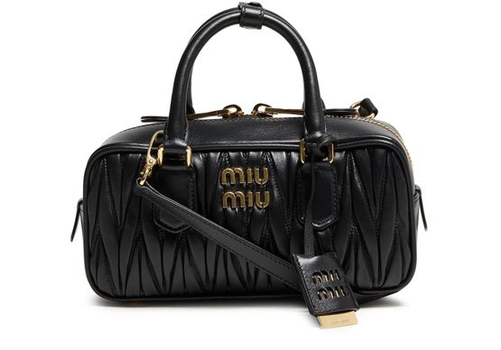 Erleben Sie die Tasche Arcadie aus gestepptem Nappaleder von Miu Miu, gefertigt für den modernen Kenner. Das „Miu Miu“-Logo mit Metallbuchstaben und das Steppdetail im Signatur-Chevronmuster verkörpern Raffinesse. Genießen Sie Vielseitigkeit mit doppelgriffen und abnehmbarem tragegurt, dazu ein reißverschluss und ein luxuriöser Gold-Finish.