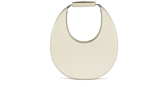 Die Tasche Moon ist eine Kreation von Staud. Ein Modell im abgerundeten Design, dessen puristische Linien durch Kontrastnähte unterstrichen werden. An ihrem Griff lässt sie sich elegant per Hand tragen.