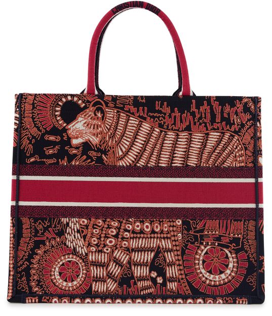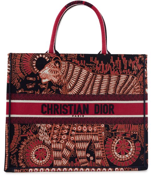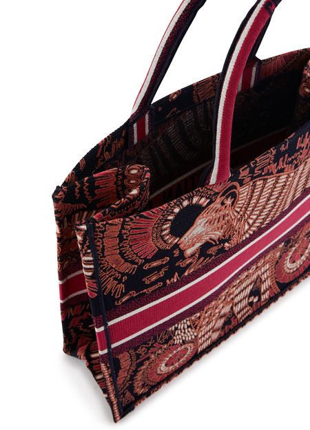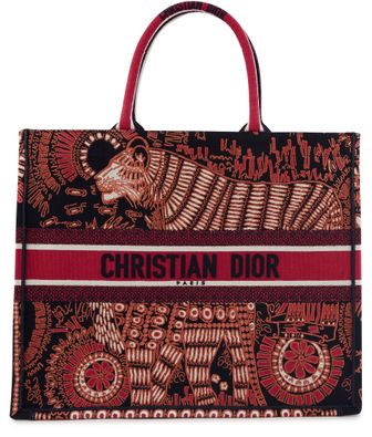 Die von Maria Grazia Chiuri kreierte "Dior Book" Tote Bag ist zum Must-have im unverkennbaren Dior Design geworden. Die Tasche im großen Format aus besticktem Stoff bietet Platz für alle wichtigen Alltagsgegenstände und besticht mit einem Giraffenprint des Dior Animals-Motivs, das vom Panafrikanismus inspiriert wurde, und einer Christian Dior Signatur auf der Vorderseite. Der Shopper wie auch die anderen Accessoires der 'Dior Animals' Linie offenbaren...
