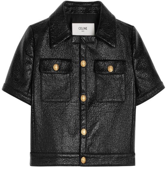 • Beschreibung : klassische Passform, verkürzte Länge, hemdkragen, 2 aufgesetzte Pattentaschen auf der Brust, 4 Celine Wappen-Druckknöpfe, 1 Celine Wappen-Druckknopf an den Brusttaschen.