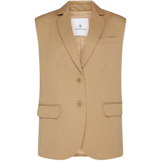 • Beschreibung : Wärmender Stoff, slim Fit, gekerbter Anzugkragen, ärmellos, knopfverschluss, paspelierung aus gleichem Material, pattentaschen, signierte Knöpfe.