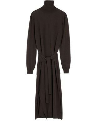 Erlebe Lemaire's Wickelkleid mit seinem raffinierten Midikleid-Design und verschluss mit schleife. Der Rollkragen und die langen, eng anliegenden Ärmel verleihen eine elegante Silhouette. Der Seitenschlitz bringt Bewegung und einen modernen Akzent für vielseitige Anlässe.