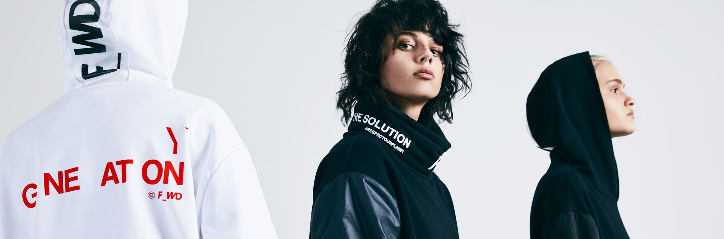 «BEHIND THE LIFESTYLE CONCEPT OF HYBRIDIZED URBAN OUTDOOR» F_WD is the next generation’s hyphen culture brand, committed for a better future. F_WD was born in 2018, from OLG’s desire to commit and invest into a greener and brighter future for the fashion industry. “With F_WD we are at the beginning of a path that leads us to a new business perspective where fashion sets two essential objectives: attention to social and environmental matters, both in a choice of materials and the production cycle.” Fabio Ducci, OLG CEO “Progress towards a sustainable world can be made only if the society feels involved in this fight. We want our designs to appeal to the emotional core of the matter.” Raphael Young, F_WD Creative Director F_WD aesthetic and creative process takes inspiration in hybridization of styles from streetwear to futuristic urban outdoor. Aiming to raise awareness and take part in the fight against plastic pollution, F_WD strives to create iconic items using recycled, vegan and environmentally friendly materials.