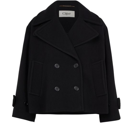 Entdecke Chloes zweireihigen Mantel mit seinem boxy Schnitt und kurzen Länge. Dieser klassische Überzieher mit Kragen und langen Ärmeln bietet eine elegante Silhouette. Ideal für vielseitige Stylingmöglichkeiten, passt er zu legeren und formellen Anlässen.