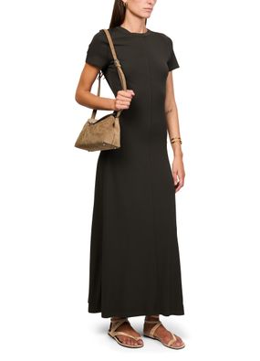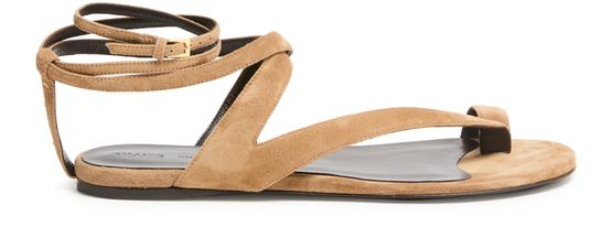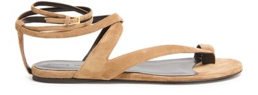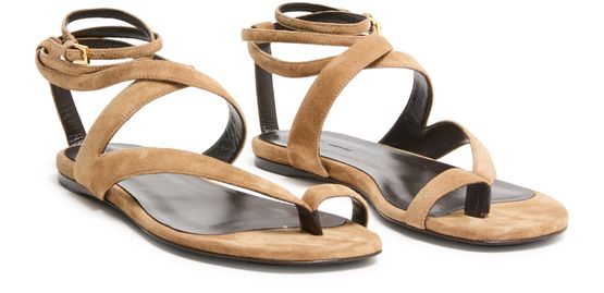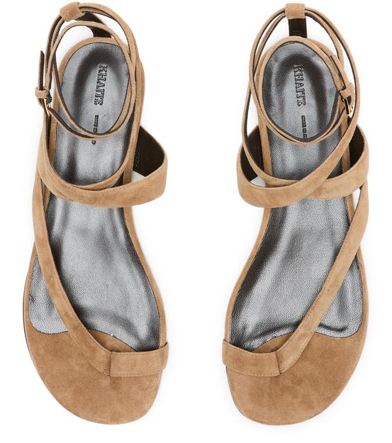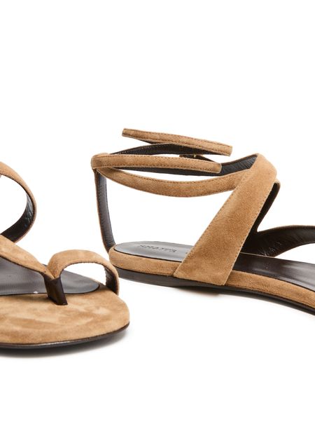 Indulge in Khaite's Aimee ankle strap sandals, expertly crafted from soft suede. These sandals feature an open, round toe design, complemented by a stylish buckled ankle strap. The flat heel provides comfort and sophistication, enhanced by a logo-printed insole and visible stitching.