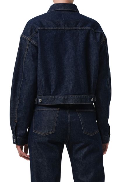 Reveal Citizens of Humanity's Alma denim jacket, a cropped trucker silhouette crafted from premium denim. Long sleeves and button fastening offer timeless appeal, while two breast patch pockets add practical flair. This versatile piece transitions effortlessly from day to night, elevating any modern wardrobe with understated sophistication.