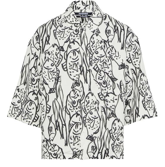 Jacquemus's Aloe shirt showcases a stylish front buttoned closure and a distinctive shirt collar. With its three-quarter-sleeved design and all-over printed logo, this casual shirt is perfect for effortless chic. Visible stitching and patch pockets, including a breast pocket, add a touch of practicality to this fashionable piece.