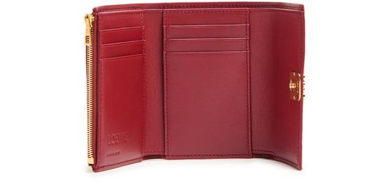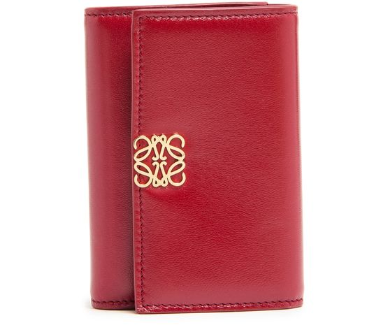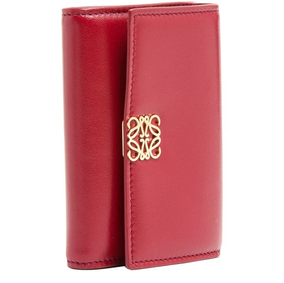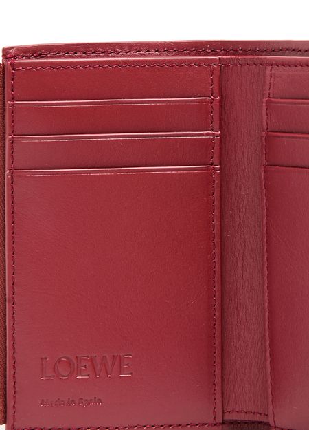 Loewe's Anagram Puffer leather vertical cardholder showcases a sleek design with a flap closure and visible topstitching. Its front logo in gold letters adds a touch of elegance, while the compact size ensures easy portability. Perfect for those who appreciate luxury and functionality in their everyday essentials.