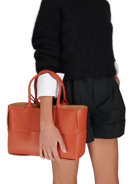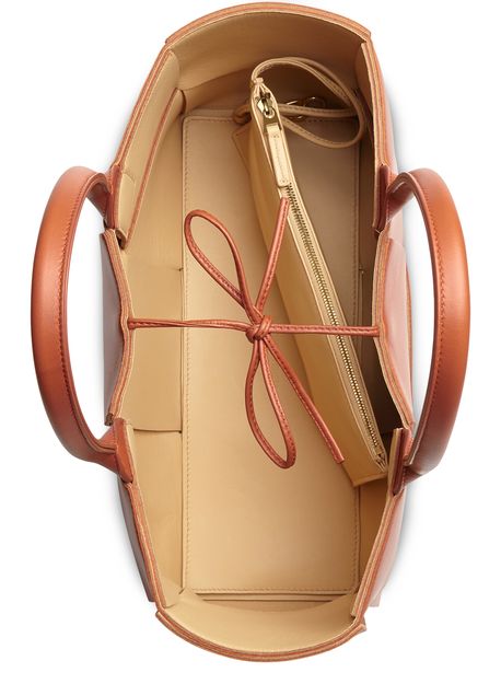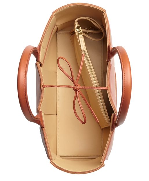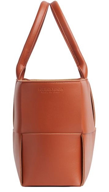 This Arco Bottega Veneta tote bag is designed with 100% calf leather. Its understated color and sleek design give it a decidedly elegant look.