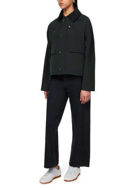 Discover Barbour's Spey oversized casual jacket. This modern piece combines a concealed zipper with snap fastening for a sleek finish. Equipped with two front flap pockets, it ensures practicality and style. Long sleeves and a short length make it perfect for contemporary casual wear.