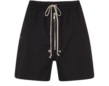 Rick Owens's Bela shorts offer a stylish short length perfect for warm days. With a convenient zipper closure and a sleek silver finish, they elevate any outfit. Featuring side pockets for practicality and an elasticated drawstring waist for comfort, these shorts blend fashion and function seamlessly for the modern wardrobe.