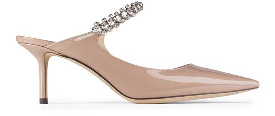 Jimmy Choo's Bing 65 mules feature a pointed toe and visible stitching, with a crystal-embellished strap for added glamour. The logo-printed insole adds a touch of luxury, while the very thin sole and stiletto heel provide a sleek silhouette. Contrast details and metal finishes complete the elegant look.