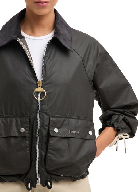 Reveal Barbour's ashby casual jacket, a short silhouette with a modern zipper closure and long sleeves. Flap pockets and a front printed logo add functional style, while its versatile design transitions seamlessly from day to night. Perfect for elevating everyday looks with a refined, effortless edge.