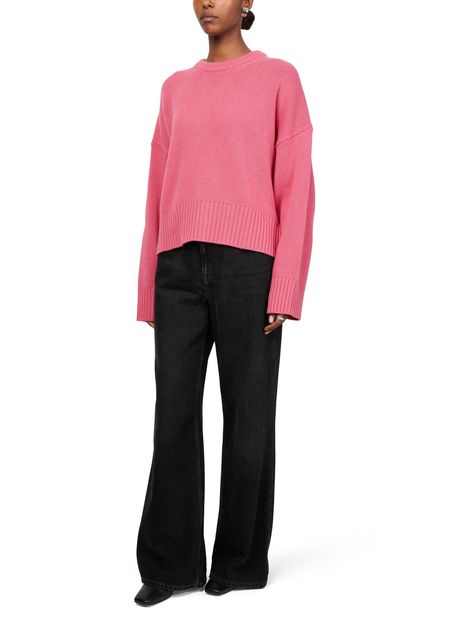 Introducing Skall Studio's Campa round-neck wool sweater, a masterpiece of modern design. This loose fit, long-sleeved sweater features a chic crop length and ribbed texture, enhanced by visible stitching. Perfect for layering, it effortlessly transitions from casual to sophisticated settings.