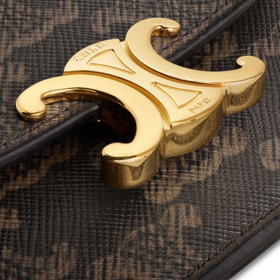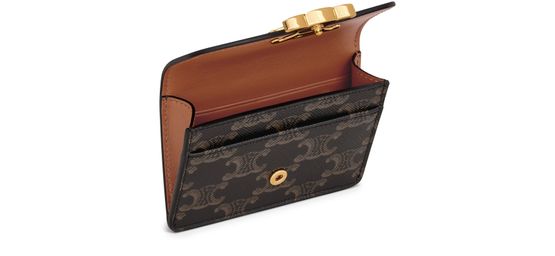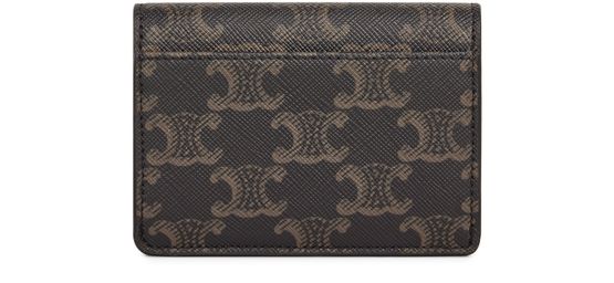 Celine's Card Holder Triomphe in Triomphe canvas is a sophisticated accessory that embodies elegance. With its exquisite gold finishing and practical triomphe snap button closure, it offers four credit card slots and one external slot for convenience. This piece is perfect for those who appreciate luxury and refined style.
