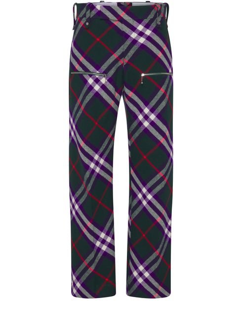 These Burberry check pants are designed in an ankle length style with two front pockets for added functionality. The logo at the back label adds a subtle touch of branding. The concealed zipper closure and belt loops provide a polished finish to the striped print design, making it a versatile addition to any wardrobe.