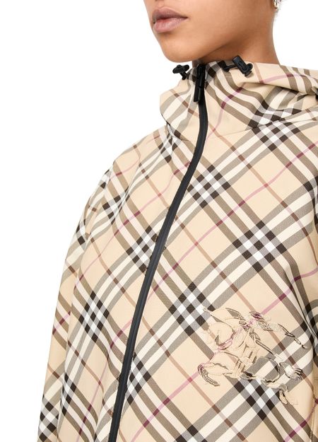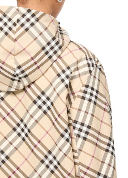 Burberry's Check short reversible jacket showcases a stylish checked pattern, perfect for casual outings. Featuring a convenient zipper closure and a front logo, this long-sleeved design includes a cozy hood for added warmth. Embrace versatility with this chic piece that effortlessly transitions between looks, ensuring you stay fashionable year-round.