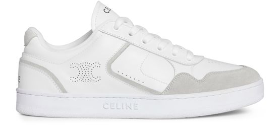 Discover the allure of Celine's Ct-10 trainer low lace-up sneakers, crafted from luxurious calfskin and suede. With a round toe shape, thin perforations grace the upper, while graphic leather cutouts add a modern twist. The iconic Celine's signature adorns the tongue and back, embodying elegance and sophistication with every step.