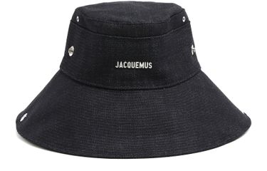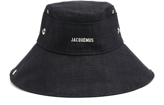 Jacquemus's De-Nimes bob showcases a stylish bucket hat design, featuring the logo at the front for a touch of sophistication. Its visible stitching adds a unique charm, making it a standout accessory for any outfit. Perfect for sunny days, this hat effortlessly blends practicality with contemporary fashion.