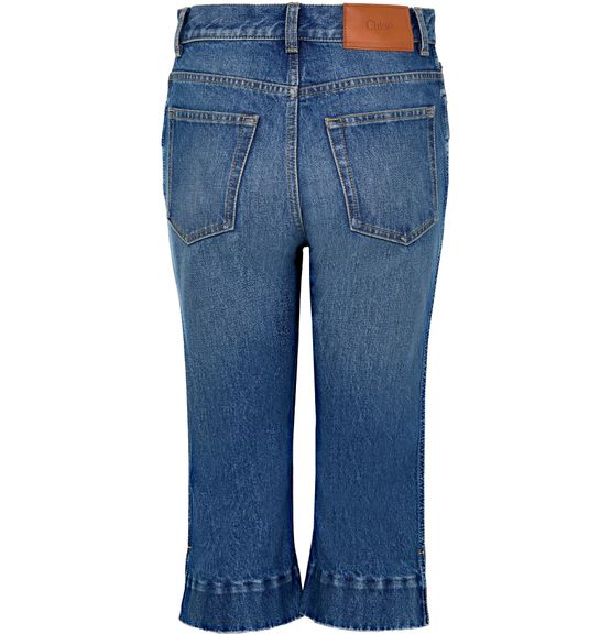 Reveal Chloe's denim shorts, crafted from faded denim with a below-knee length for a modern silhouette. The buttoned zipper closure, belt loops, and visible stitching add refined structure, while side and back patch pockets with a back leather logo offer both function and signature flair.