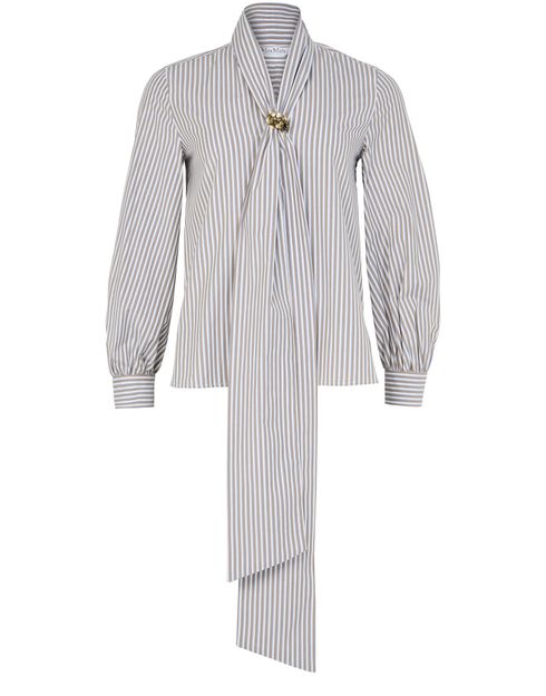 Reimagine Max Mara's Disco striped shirt with its striking striped print and puff long sleeves, creating a statement piece for any wardrobe. The loose fit offers effortless comfort, while the bow fastening adds a touch of elegance. Ideal for pairing with tailored trousers or skirts for a polished look.
