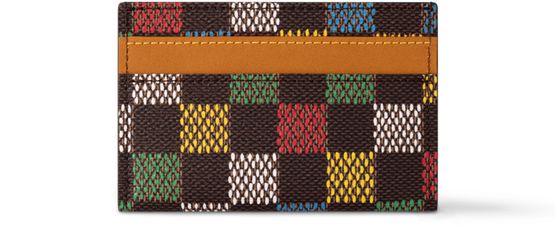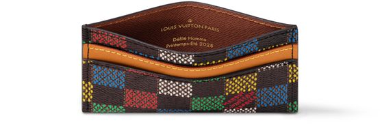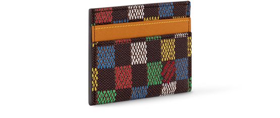 The Double Card Holder is made from LV Vers Damier Ebene coated canvas with its many-hued checks seemingly painted over the canvas’ original pattern. The horizontal leather band structures the design of this card holder and its four card slots. The central pocket is ideal for smaller essentials.