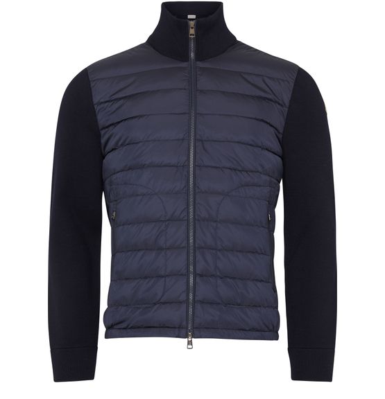 Moncler's Double fabric jacket is a high neck jacket with a tailored cut and long sleeves. It features a combination of textures and cuffs, and is designed with a zipper fastening for ease of wear. This versatile jacket is a stylish and practical addition to any wardrobe.