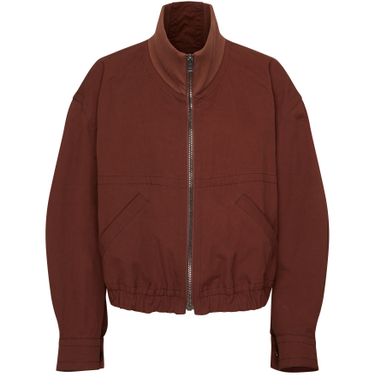 Lemaire's double layer blouson showcases a short, long-sleeved silhouette with a sleek zipper closure. Inspired by classic bombers, it features a high neck for added warmth and side pockets for practicality. The silver finish adds a modern touch, making it a versatile piece for any stylish wardrobe.