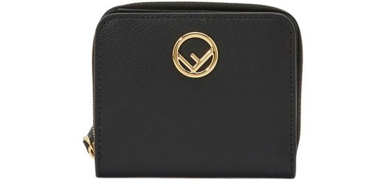 You'll love the F is Fendi wallet's zip closure. Sober and stylish, this wallet sports the initial of the brand in a golden circle.