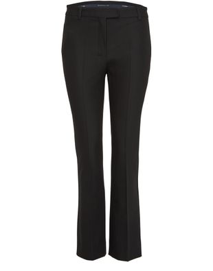 • Description : buttoned and concealed zipper closure, belt loops, back darts, appliquéd logo, visible stitching, ankle length, formal pants, belted waist, slim fit, high-waisted fit.