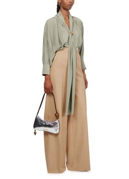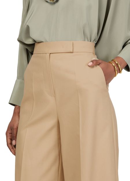 Embrace Max Mara's Finish wide leg pants that redefine elegance with their sophisticated ankle-length cut. Featuring pleated details and a concealed closure, these formal pants offer a seamless blend of comfort and style. Perfect for both formal and casual occasions, they add a touch of grace to any wardrobe.