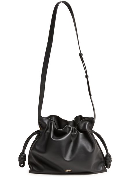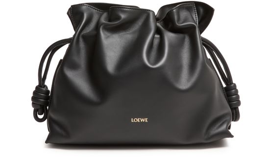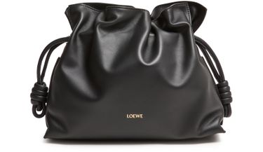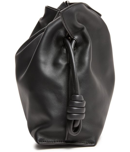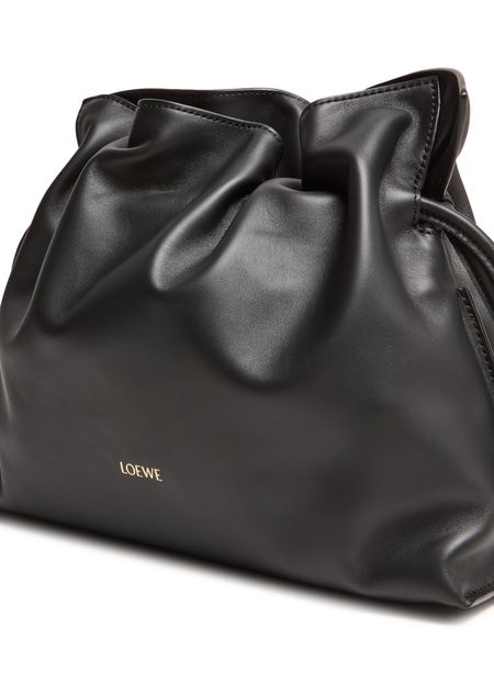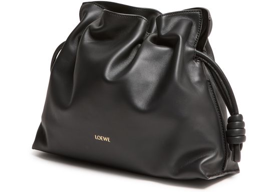 Reveal Loewe's Medium Flamenco clutch in nappa calfskin, a soft and slouchy bag with a cinched closure and historical knot drawstrings. The thin, detachable strap offer versatile carrying options, while visible topstitching and a front embossed logo highlight exceptional craftsmanship.
