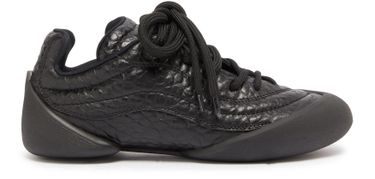 McQueen's Flexion sneakers showcase a sleek, closed design with visible stitching that highlights their craftsmanship. The round toe offers a classic silhouette, while the innovative materials provide comfort and support. Perfect for those who appreciate a blend of style and functionality, these sneakers elevate any casual ensemble effortlessly.