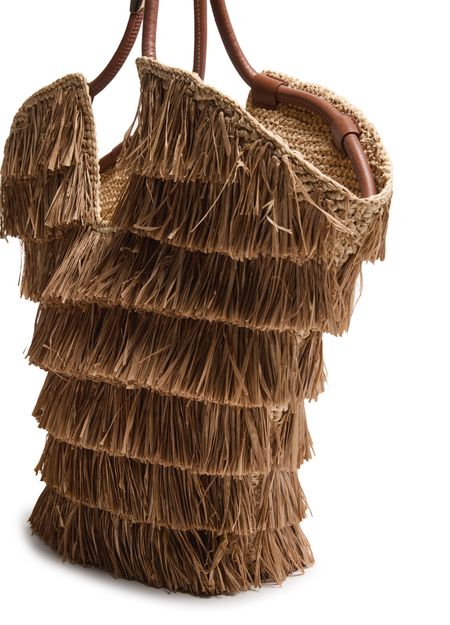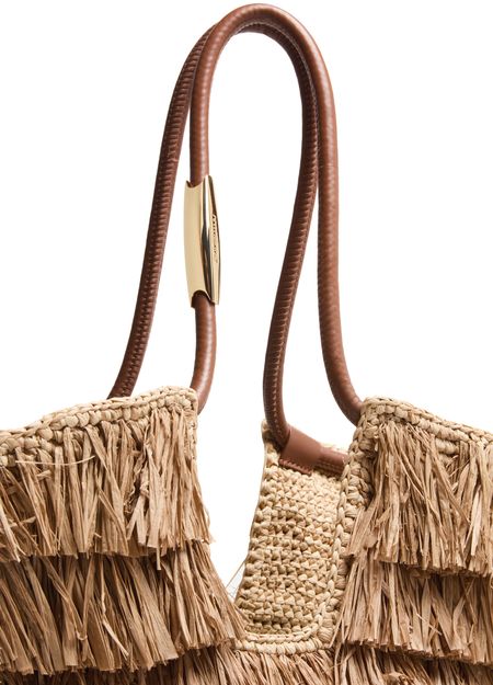 Reveal Zimmermann's Goldentime medium fringed tote bag, crafted in open weave for a refined texture. The single handle and fringe details add a playful touch, while the spacious interior compartment ensures effortless organization. This tote blends modern design with functional elegance for everyday sophistication.