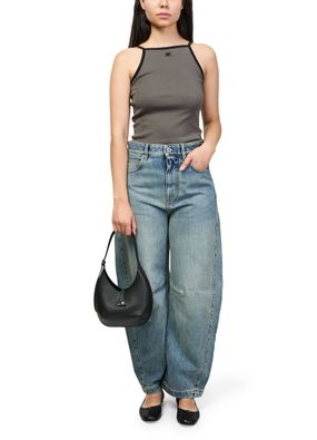 Reveal Courreges's Holy small hobo bag, crafted from grained leather with a single handle for effortless style. The silver clasp and front metallic logo add a refined touch, while visible stitching and a silver finish highlight the brand’s attention to detail and modern sophistication.