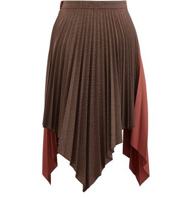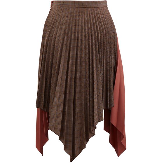 The Ilsie pleated skirt is made by Acne Studios. It goes down to the mid-calf and features a thin belt and an asymmetric bottom.