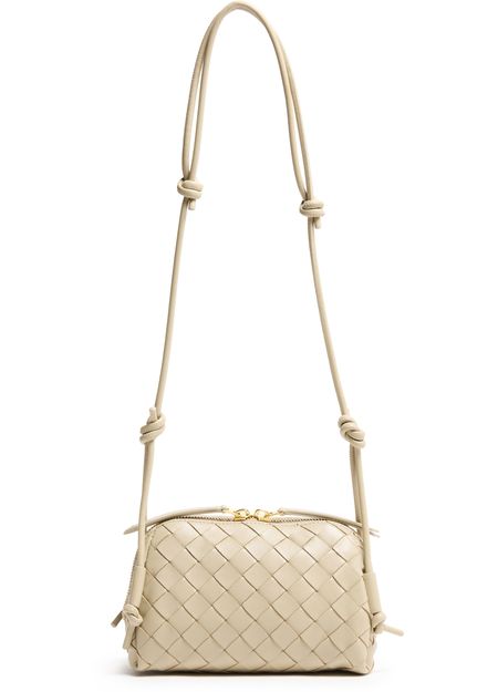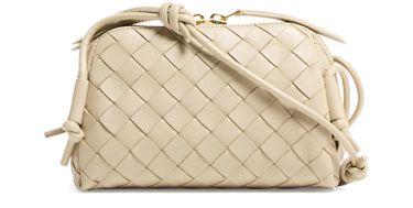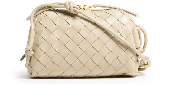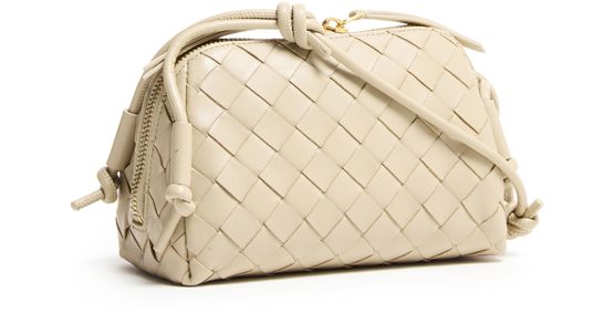 • Description : Mini bag, crossbody bag, toiletries bag / cosmetics pouch, intrecciato weaving technique, iconic bow clasp, thin strap, adjustable strap, embossed logo, smooth leather, zipper closure.