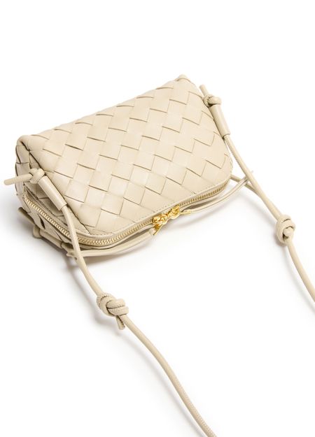 Unveil Bottega Veneta's Intrecciato Concert Pouch, a masterpiece of smooth leather craftsmanship. This mini bag features the iconic Intrecciato weaving technique and an embossed logo, offering a blend of elegance and functionality. With its adjustable thin strap and zipper closure, it ensures both style and practicality.