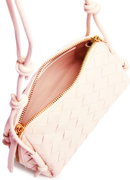 Unveil Bottega Veneta's Intrecciato Concert Pouch, a masterpiece of smooth leather craftsmanship. This mini bag features the iconic Intrecciato weaving technique and an embossed logo, offering a blend of elegance and functionality. With its adjustable thin strap and zipper closure, it ensures both style and practicality.