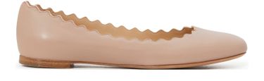Chloé's Lauren flats are made from smooth leather with a delicate scalloped edge for a feminine touch. The rounded toe and logo insole provide comfort and style, making them a versatile choice for any wardrobe. These classic flats are a timeless addition to any shoe collection.