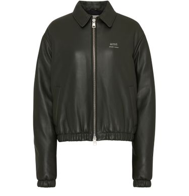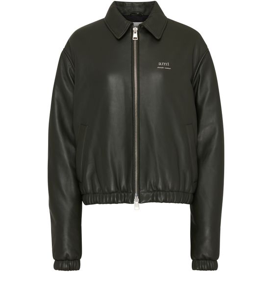 Ami's Leather jacket is a padded jacket with a sleek design and a zipper closure. It provides extra protection from the elements with its hood and ensures warmth and comfort during colder weather.