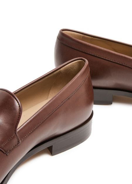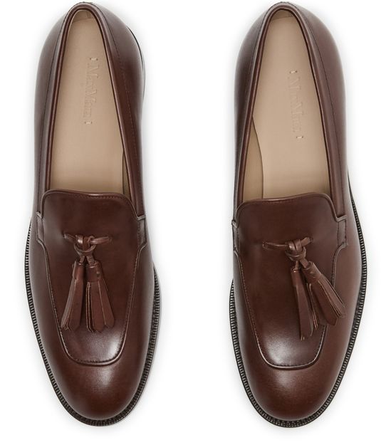 Reveal Max Mara's smooth leather loafers, crafted with a refined round toe and low heel for everyday sophistication. Visible stitching and tassel details add a modern touch, while the engraved logo and leather interior ensure comfort and signature style in every step.