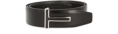 Tom Ford Distribution's Leather T belt features the brand's signature buckle with a sleek silver finish. Crafted from high-quality leather, this stylish accessory offers an adjustable length for a customized fit. Elevate any outfit with this versatile and timeless piece that is perfect for both casual and formal looks.