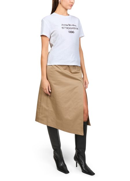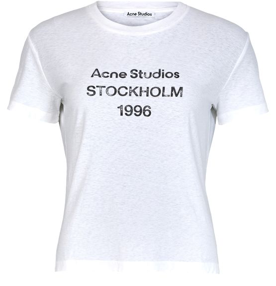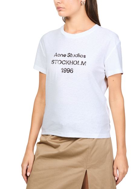 Unveil Acne Studios' logo short sleeve t-shirt, a modern staple piece. This slim fit top features a crew neck and short sleeves, perfect for a contemporary, cropped silhouette. The printed front logo adds a refined touch, making it ideal for versatile styling in any wardrobe.
