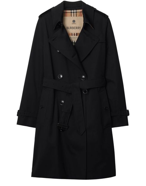 Reveal Burberry's long trench coat, a refined silhouette featuring a classic collar and double-breasted closure. Flap and side pockets add practical flair, while the front logo detail elevates its modern appeal. Long sleeves and versatile styling make this piece a standout for any occasion.