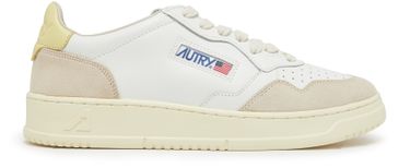 Autry's Low sneakers Medalist are leather lace-up shoes with graphic cut-outs and visible stitching. They feature a logo on the tongue, side, and back. The sneakers have a thick outsole for added comfort and durability.